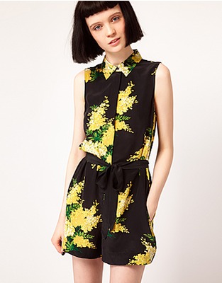 Equipment playsuit. Black on yellow is a trend that has been with us from Spring ’12 thanks to Yigal Azrouël, Monique Lhuillier and Oscar de la Renta, and looks lovely on this flowery playsuit.
