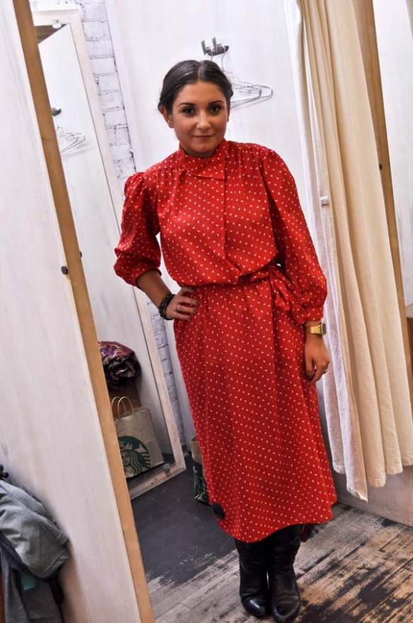 Easily the best vintage shop I’ve ever visited. It is based on the edges of Greenwich Village retail ‘40s–‘60s clothing and, despite it being quite small, and with a dated décor of yellow walls and tatty shelves, I found four – 4! Different pieces here: a warm Norwegian jumper which I’ll have to defend against my boyfriend’s grubby mitts, a flattering dress, a beautiful burgundy beaded silk top and an amazing, gorgeous floor-length, ivory rayon bed dress that is bound to make history. It features rather wide, lacy shoulder straps which continue as a pattern in different inserts on the chest. Never seen such a charming, timeless piece of underwear like it, vintage or not. I had to have it!